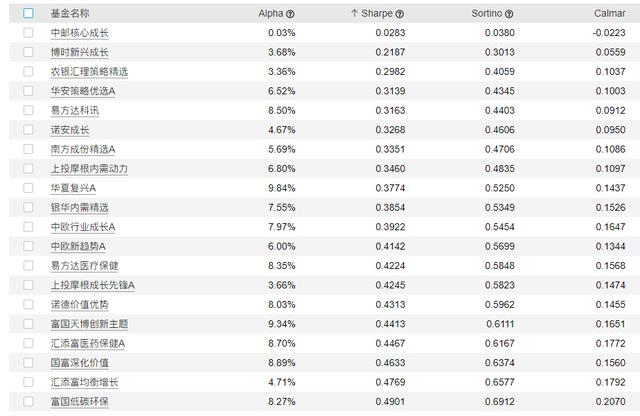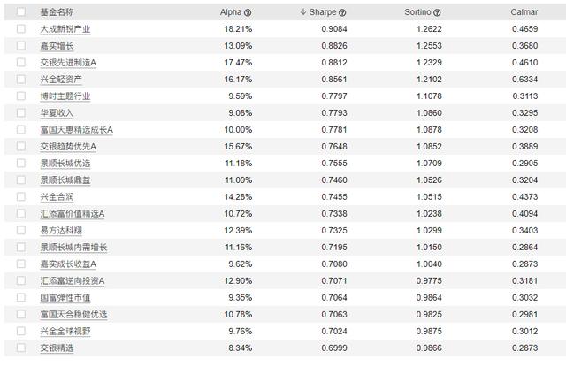 此外,历史收益率最高嘉实增长、景顺长城内需增长、景顺长城优选、景顺长城鼎益、博时主题行业和华夏收入也出现在夏普比率榜单的头部。