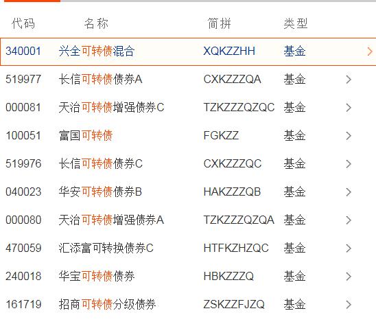 目前市场上的可转债基金不多,下面为天天基金网搜索到的可转债基金,主要投资标的为可转债。