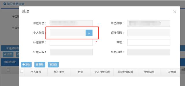 3.选择好补缴人员后,输入需要补缴的金额及备注,点击“添加”。如下图所示: