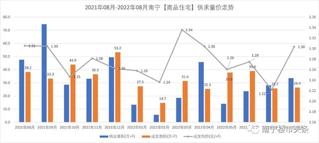 8月份,南宁主城区商品住宅成交26.4万方,同比跌幅31%,环比基本持平;成交均价约1.3万元/㎡,同比基本持平,环比上涨6.67%。