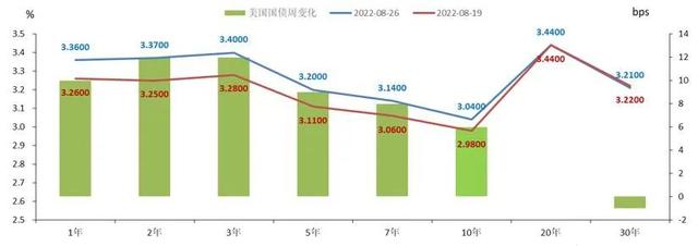 (5)美债表现:截止8月26日周五,10年期美债收益率较上周五8月19日,上行6BP,收至3.04%,但2年-10年期美债收益率持续倒挂,但利差走阔至33BP。