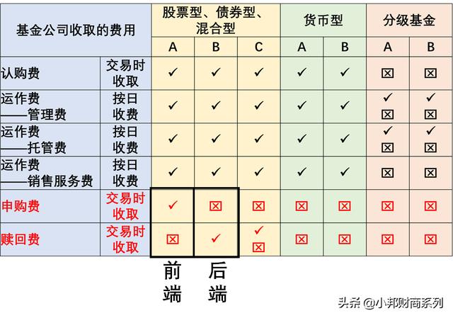网上搜到的文章大多集中讨论前端和后端的收费的不同,但他们所说的收费通常都是针对申购和赎回的。