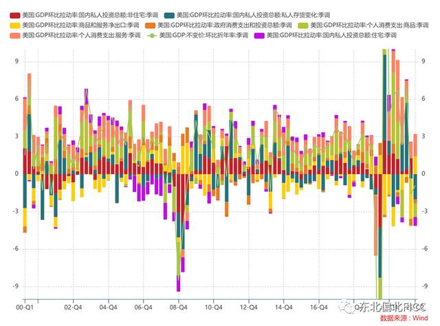 图表一:美国GDP环比增速分项贡献 (百分比)
