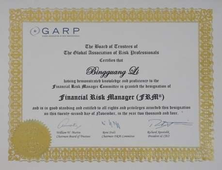 FRM(金融风险管理师 )证书是国际公认的,证明持有者个人拥有能作出客观风险分析和相对应决策等风险管理必备的完整知识结构和能力的标准。在国际上,FRM证书是许多雇主在雇佣、提升及在其公司内部委派附加职责的时候用来衡量风险管理能力和专业化程度的基准。