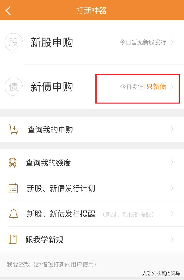 进来之后点击新债申购。
