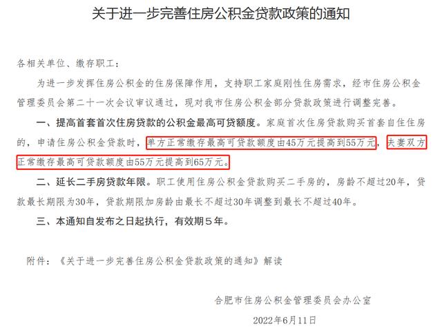 合肥市住房公积金管理中心今天正式发布通知,进一步完善了住房公积金贷款政策。