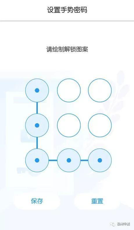 (4)手机号注册成功后,直接进入手势设置界面,进行设置手势密码,点击“保存”即可。