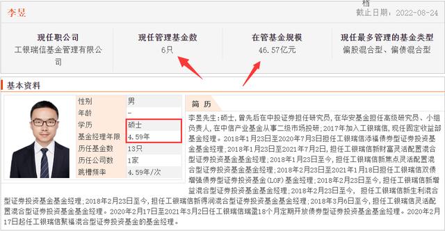 7、工银瑞信基金李昱。在管基金6只,在管规模46.57亿元,基金经理年限也是4.59年。工银瑞信灵活配置混合A(487016)机构占比36.67%,最新一期持有人户数4829户,业绩基准是中证800指数收益率×55% 中债信用债总财富指数收益率×45%,李昱2018年3月6日上任,查询Choice数据,截至目前任职回报138.57%,年化回报21.44%,同类排名308/2121。前十大持仓集中度仅17.01%。