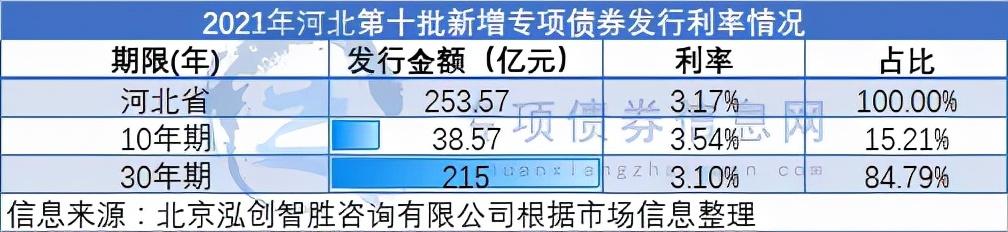 2021年11月30日,2021年河北省第十批次新增专项债券五十三至五十四期完成招标,共发行253.57亿元。