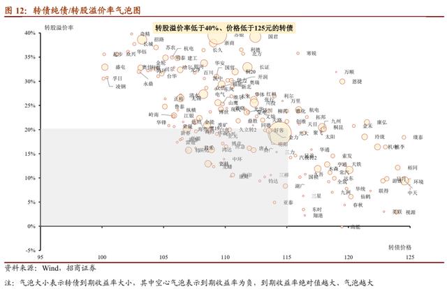 转债整体位置继续向左下方移动。本周价格低于115元、转股溢价率低于20%的标的有所增加,过去两周的调整使转债性价比整体回升,整体上价格低于115元、转股溢价率低于20%的转债数量仍然较少,但价格低于125元、转股溢价率低于20%的转债数量已然不少。