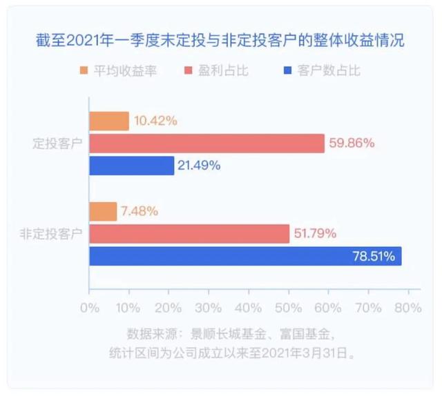 根据景顺长城和富国基金统计,在同一区间内定投客户比非定投客户数量占比少18.65%,但是定投客户收益比非定投客户平均收益高出3%!坚持定投策略,能够帮我们熨平股市波动。遇到回调也不慌,定投具备低位吸筹降低持仓成本的优点,适当在市场低位时加大定投力度效果会更好!