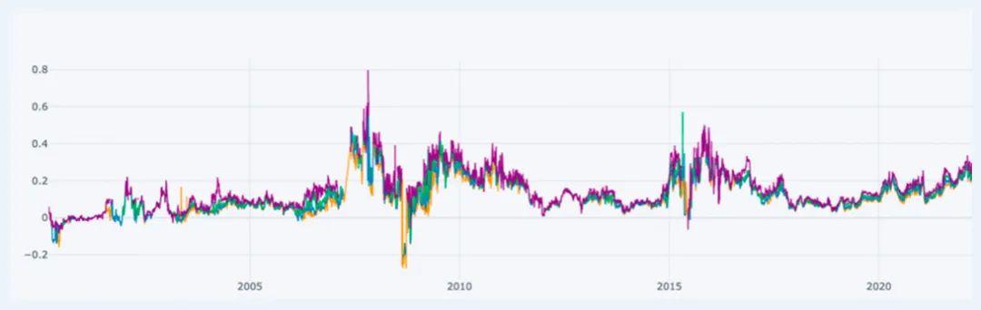对于股性转债来说,平价是主要驱动力,相较之下估值的推动作用大大降低,且市场参与者主要是情绪交易投资者,因此我们主要关注转债市场相对权益市场的情绪。因此选用转债和正股的隐含波动率的差值。