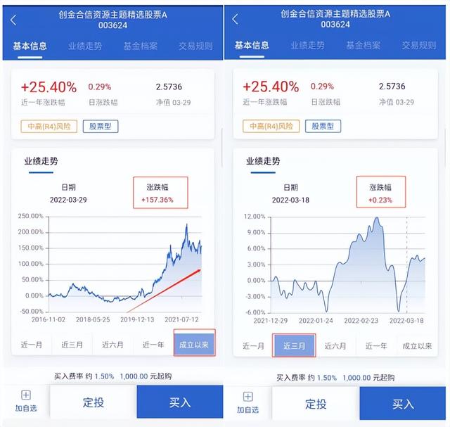 其实并不是所有的股票型基金都会随着股市的波动而下跌,关键看基金经理的择股能力。比如下面这只创金合信资源主题精选股票A,不仅从成立以来涨幅高达157.36%,在今年年初股市大幅下探的背景下还实现了正收益。