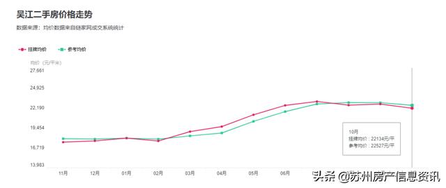 吴江区10月二手房挂牌均价22134元/㎡,参考均价22527元/㎡。