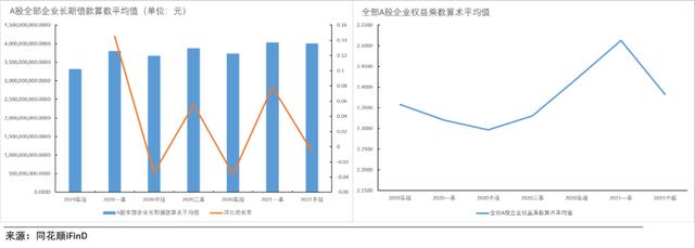 第一,通过影响上市企业基本面改善,推动企业估值中枢上移,但这条途径的传导相对较慢,且影响甚微。上市企业相对其他未上市企业来说,本身就具有融资优势,尤其是那些业绩长期改善、业务模式成熟、毛利率稳定的企业。上市企业比其他企业的股权融资渠道更加通畅,融资成本极低,客观的影响企业选择贷款融资的偏好。从下图中我们可以看到,无论全部A股上市企业的长期借款平均值还是权益乘数均值,在央行执行宽松货币政策后的一年,也就是2021年第一季度,才有显著的提升,因此这个渠道的影响传导相对较慢。