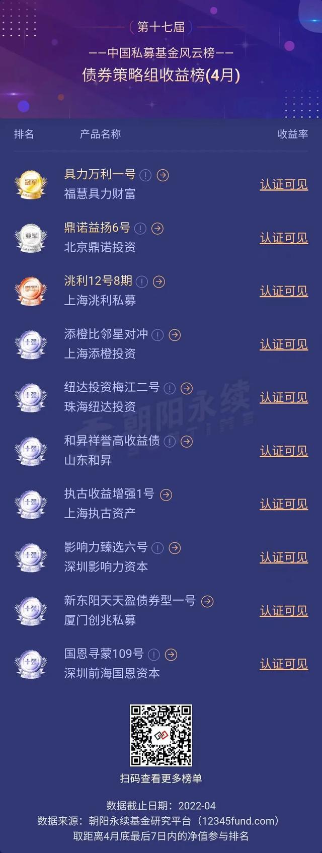 4月,福慧具力财富旗下的“具力万利一号”以单月超30%的收益摘得桂冠。