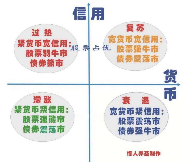 宽货币有利于债市,适合配置较高比例的债券基金;宽信用有利于股市,这时应该降低债券基金比例,大比例配置股票基金。