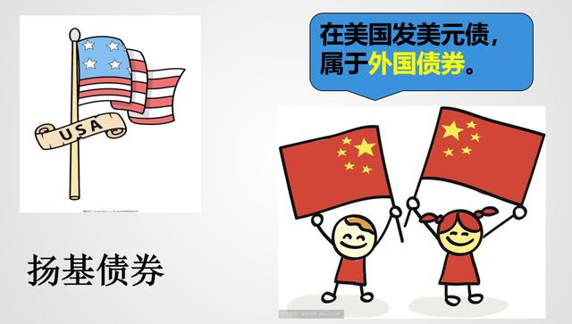 外国债券就比较有趣了。在美国发行的外国债券叫扬基债券,在日本发行的外国债券叫武士债券,境外机构在中国发行的以人民币计价的债券叫熊猫债券。