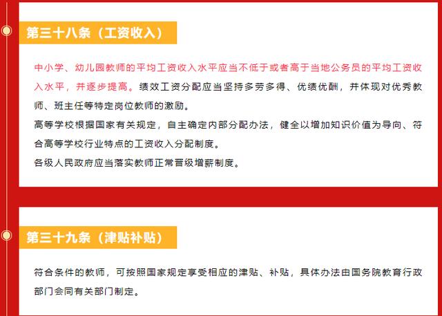 本次《草案》中重点提及教师的“工资收入”、“各类补贴”、“住房医疗”、“退休待遇”等内容,这对教师群体的福利待遇提升有着积极作用!
