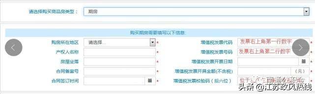 选择期房之后,页面显示出购买期房所需填写信息。(红字部分为解释说明,真实页面以另一种方式提示。)