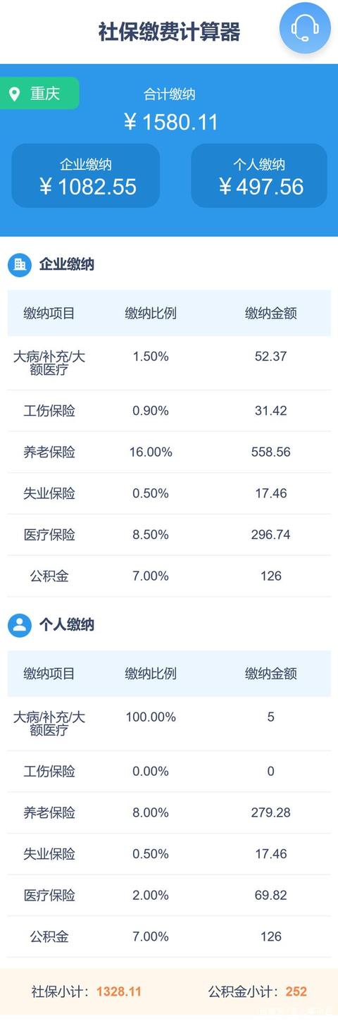 (以工伤0.9%、公积金7%、最低基数为例;注:因各人社保缴费基数各有不同、社保费率时有变动,以下数值仅作参考,不能代表各人具体社保费用)