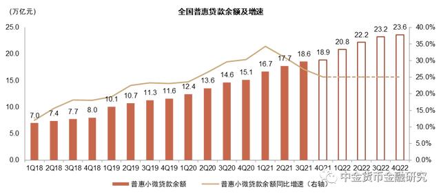 图表95:我们预计2022年全国普惠贷款增速有望保持在25%以上,总额突破20万亿元