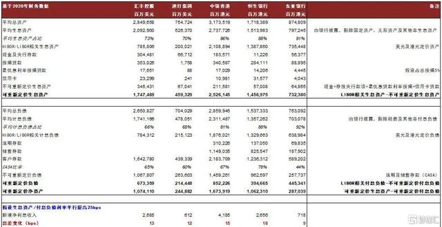 中银香港与恒生银行息差弹性更大。我们根据各家银行2020年资产负债表结构对息差进行利率敏感性测算,假设资产和负债端利率平行上升25bps,中银香港、恒生银行、东亚银行、渣打集团、汇丰控股息差分别改善15bps、18bps、9bps、12bps、13bps。中银香港与恒生银行息差弹性较大:一方面,两家银行HIBOR/LIBOR相关可重新定价生息资产占比大,且在本地市场具备更强的议价能力,因为有望更快看到资产收益率改善;另一方面,两家银行负债端CASA比率高,活期及储蓄存款可有效对冲利率上行带来负债成本的上升。