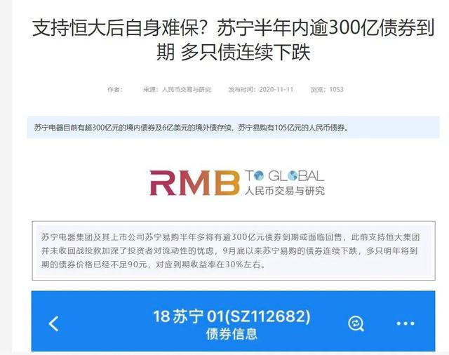 包括“18苏宁01”、“18苏宁02”、“18苏宁03”、“18苏宁04”、“18苏宁05”在内的多只苏宁易购债券出现连续阴跌,这足以表面市场的担忧。