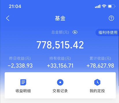今天没有操作。继续卧倒不动。这是今天更新后的基金仓位图。今天收益 3100元,目前基金总仓位77.8万