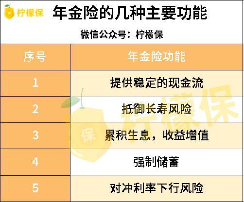 因此,年金险的主要功能如下: