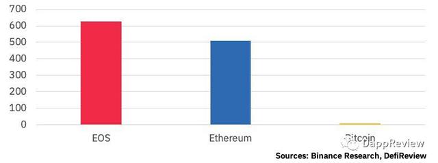 截至2019年5月31日,从现有应用数、交易数以及锁在平台(如Maker、Compound)里的金额这几个维度来看,以太坊占主导地位。因此,基于以太坊的DeFi类Dapp将是本次报告的重点。