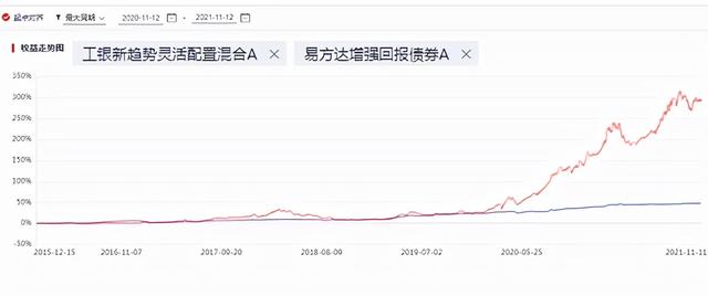 你这个说白了,就是选择一只股基、一只债基,然后他们之间的配比根据股市情况做“灵活配置”。比如下图,在红色底部位置股基回撤较大时,加仓买入股基,然后股基高位时,再卖出股基(也可能踏空了),这个精准择时,太难了。
