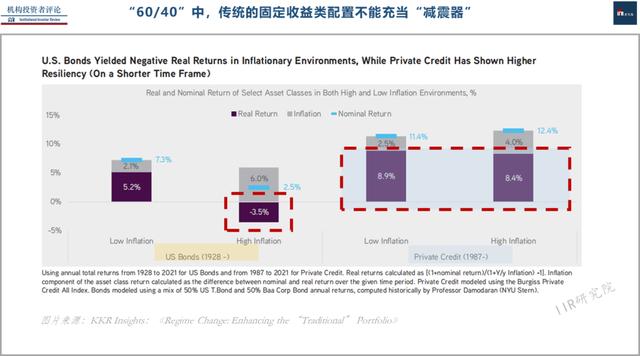 2. 高通胀时期,美国公开市场股票、美国债券的实际回报均为负,但实体资产(房地产和基础设施)以及私募债,则表现出更好的“弹性”。