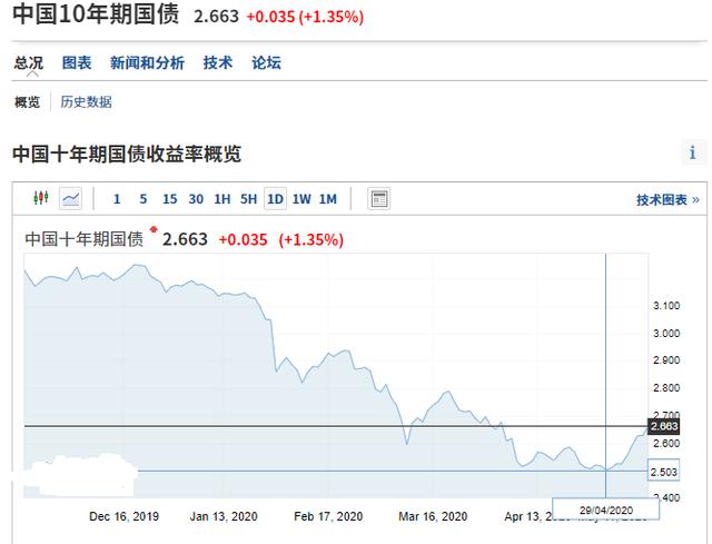 这次的债券基金下跌,是因为国债利率的快速上升。如下图的十年期国债收益率,从4月29日的2.50%,上涨到今天的2.63%,涨幅达到5.2%。2018年以来,债券市场经历了长达两年的牛市,而这段时间国债收益从3.49%一路下跌到现在的2.63%。债券基金的收益与国债利率成方向关系。