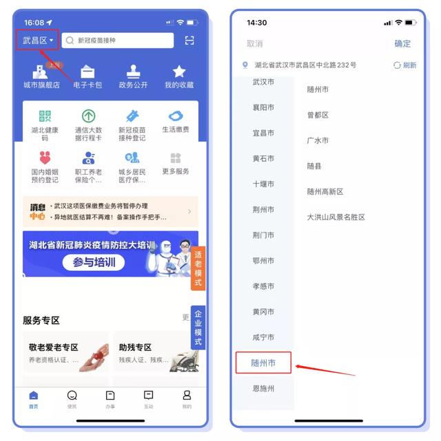 第一步:打开“鄂汇办”App,区划选择“随州市”;