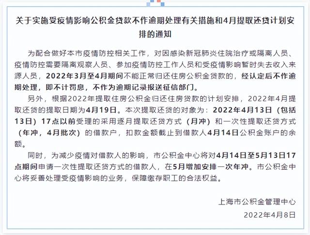 不过这是针对银行的商业贷款,对于公积金贷款能否推迟延期,上海公积金管理中心4月8日晚上也发布通知,受到疫情影响的四类人员:
