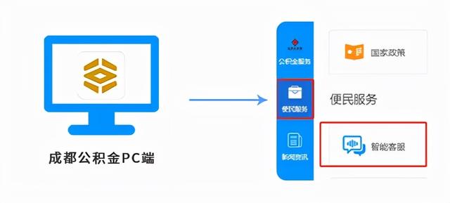 打开“成都公积金”PC端网上服务大厅后,在【便民服务】版块,点击智能客服即可。