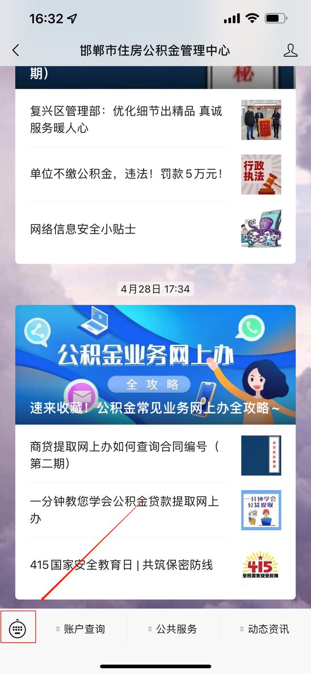微信公众号里搜索“邯郸市住房公积金管理中心”,点击最下方“公共服务”进入服务主页面,点击右下角“APP下载”,即可按照下载指引安装手机客户端。(点击图片可放大查看)