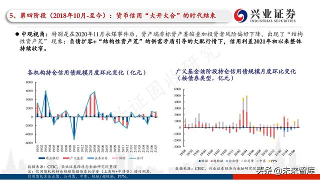 第四阶段(2018年10月-至今):新的货币信用框架下,“大开大合”的时代结束。以往紧信用需要紧货币 的配合,新的货币信用框架下货币和信用政策的同步性减弱;同时资管新规下非标压降,“缺资产”的压力 引发了投资者对信用债持续的配置需求;微观层面,除非发生类似于永煤事件等超预期违约事件,信用债违 约对整体信用利差的冲击在边际减弱。