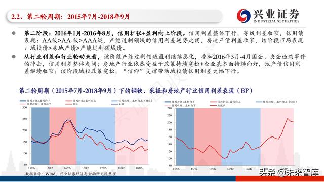 3)对于行业利差来看,除了双周期叠加框架外,房地产、城投、产能过剩领域的行业轮动表现往往还与各个 行业所处的实际盈利周期(产能过剩领域、房地产行业)乃至于政策周期(城投、房地产行业)息息相关。
