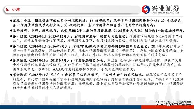 基于宏观、中观、微观视角,我们将2012年以来的信用债表现(以信用利差表征)划分为4个阶段进行观察。