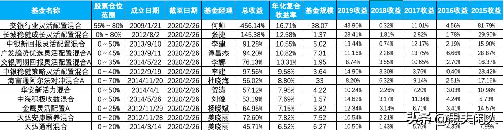 连续5年实现正收益之基金根据这四个条件,我们从3000 只基金中筛选出来12只混合型基金,见下表: