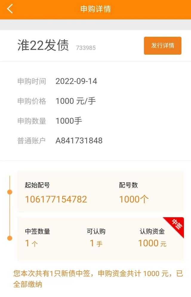 淮22转债中签截图(可以左右滑动)