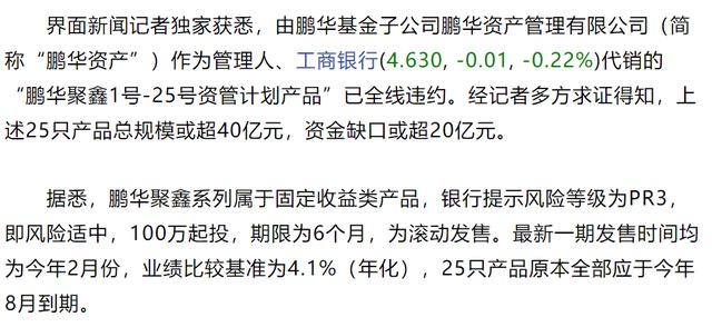 例如2020年工行代销的鹏华聚鑫资管计划出现的全线违约,这个产品的风险等级就是R3级,而业绩比较基准只有4.1%。