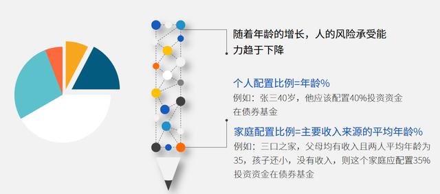 债券基金占个人或家庭总资产的比例,一般为年龄的百分比,如图: