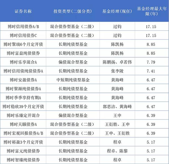 如果把基金经理按管理年限排序,博时旗下债类产品的牛人浮出水面。