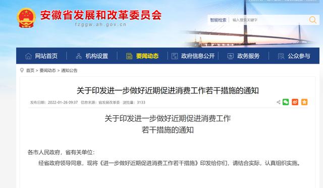 1月26日,安徽省发改委在官网发布《关于印发进一步做好近期促进消费工作若干措施的通知》,其中提到“引导房产、汽车、家电销售企业在春节消费旺季,通过分期免手续费、赠送抵扣券、降低首付比例、补贴置换等方式,扩大大宗商品消费”。
