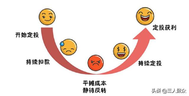 比如假设基金净值为2元时进行定投2000元,然后未来的6个月每个月定投时净值下跌0.1元,而未来的6个月到12个月每个月定投时净值上涨0.1元,即我们常听说的基金定投微笑型曲线——显而易见,由于2000元在1.4元低处买入了更多的份额(其他月份也一样),当净值回到原净值时便可获利。