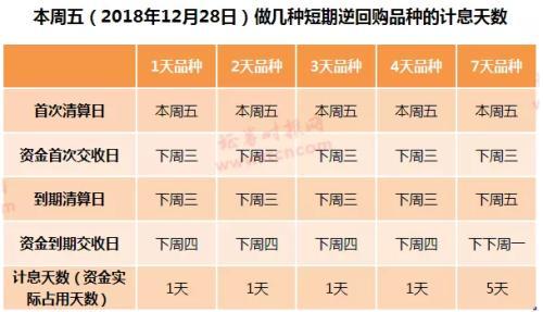 若在本周四做7天以内逆回购品种,各项品种的计息天数也均为5天~7天不等。