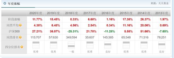 下图显示从2009年开始他的收益就一直碾压沪深300指数,2008年成立至今13年总收益为215%平均年化超6%,三年来看,年化回报超过了10%,最差的也就是近半的表现只有1.6%,但是也远超过其他债券型基金。